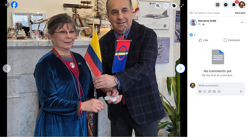 Vid mötet gav vi en bild av läget i Sápmi och vår stora oro över exploateringen av samiska marker. Vi lyfte bland annat gruvprojekten Per Geijer, Rönnbäcken, Gállok och Stekenjokk, samt den planerade militära expansionen i Arvidsjaur – åtgärder som riskerar att få allvarliga konsekvenser för renskötseln och samiska rättigheter.